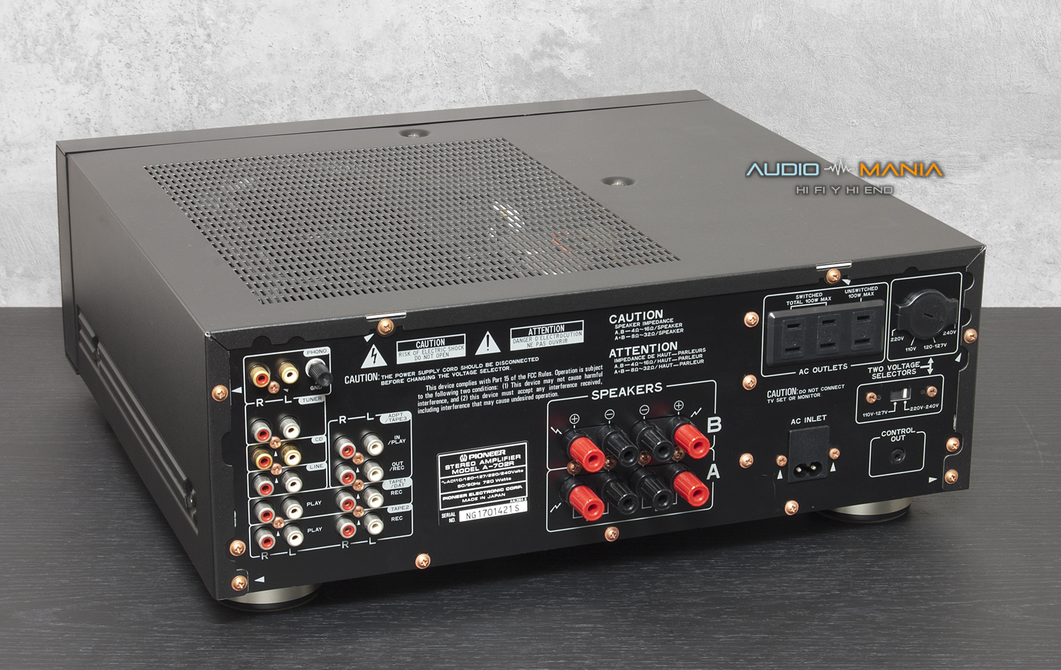 85 + 85 Watts RMS en 8 Ohms THD: 0.007% Salidas para 4 parlantes A o B y A + B 7 Entradas Phono MM y MC Pre y potencia separable Graves, Agudos , y Loudness Pure Direct Frente y perillas de metal Control remoto Modelo tope de línea Salida transistorizada, sin integrados Fabricado en Japón 220 Volts de origen Estado impecable, con caja, telgopores y manual , fotos reales de la unidad en venta.